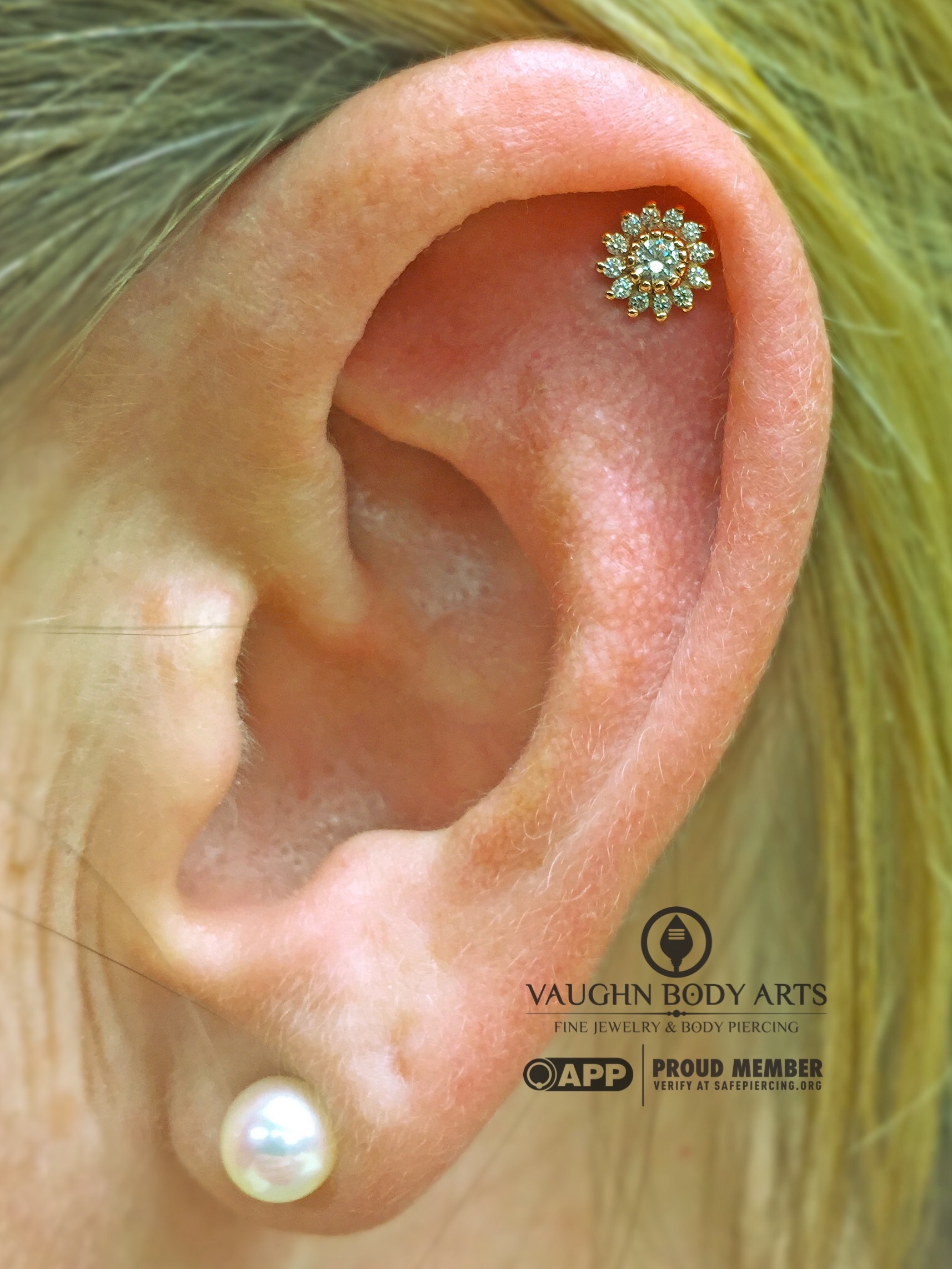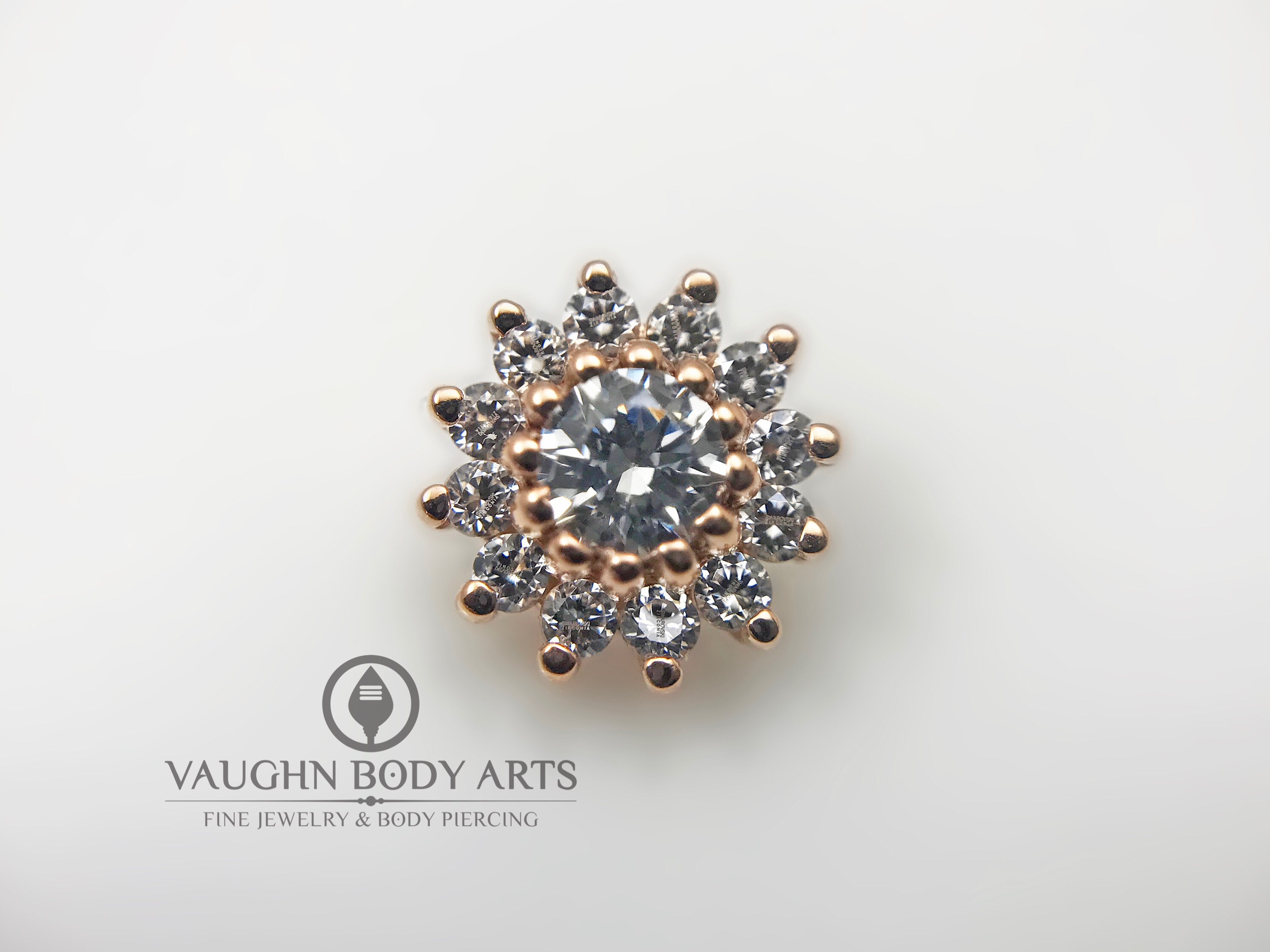 *Note: These can be custom ordered with any gemstone combination. Available in white gold, yellow gold, and rose gold. Contact Vaughn Body Arts for custom designing.
