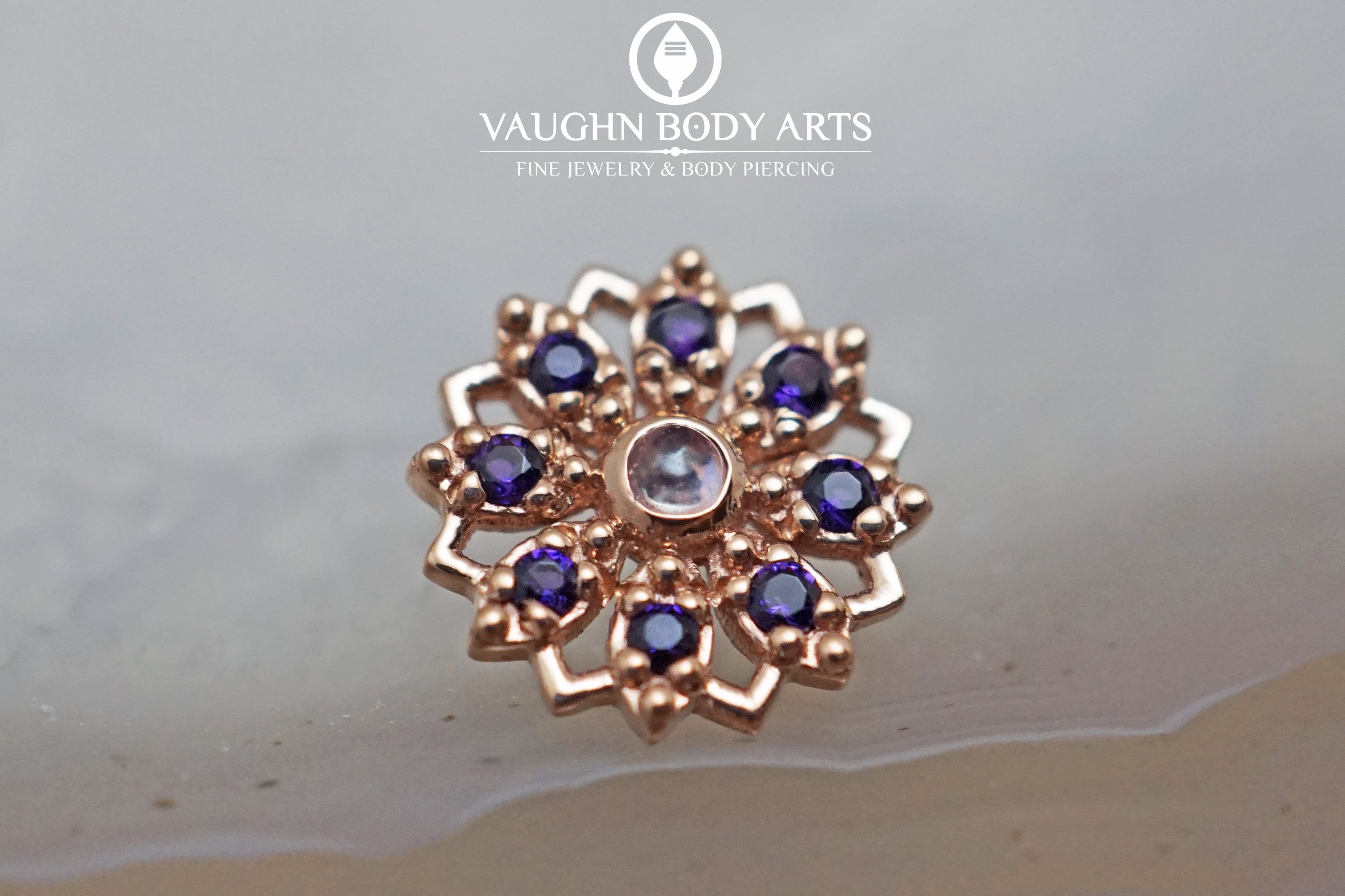 Solid 14k Rose Gold "Rosette" threaded end made by BVLA.