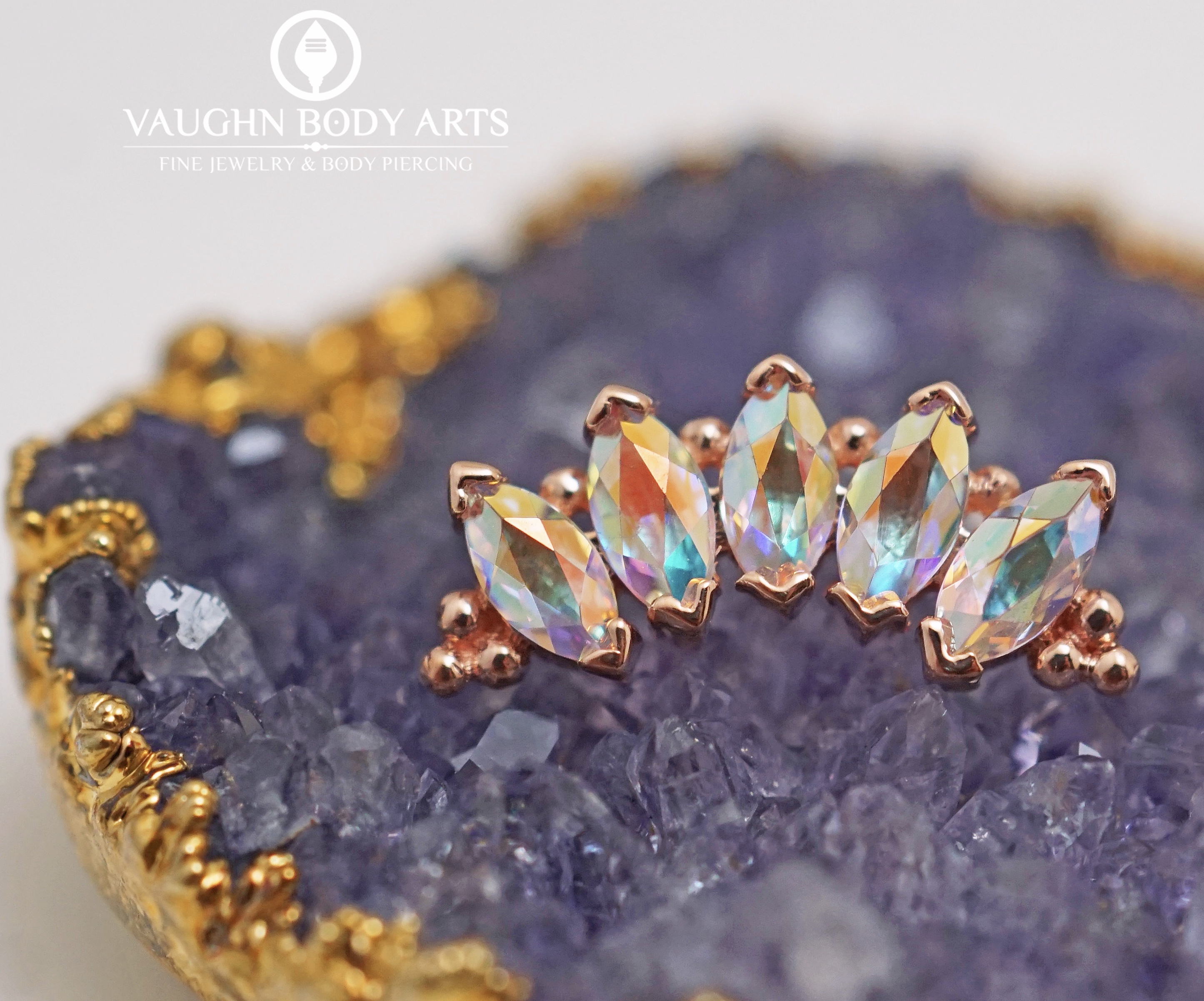Solid 14 karat Rose Gold "Marquise Panaraya" threaded end with 4mm x 2mm Mercury Mist Topaz. Made by BVLA.