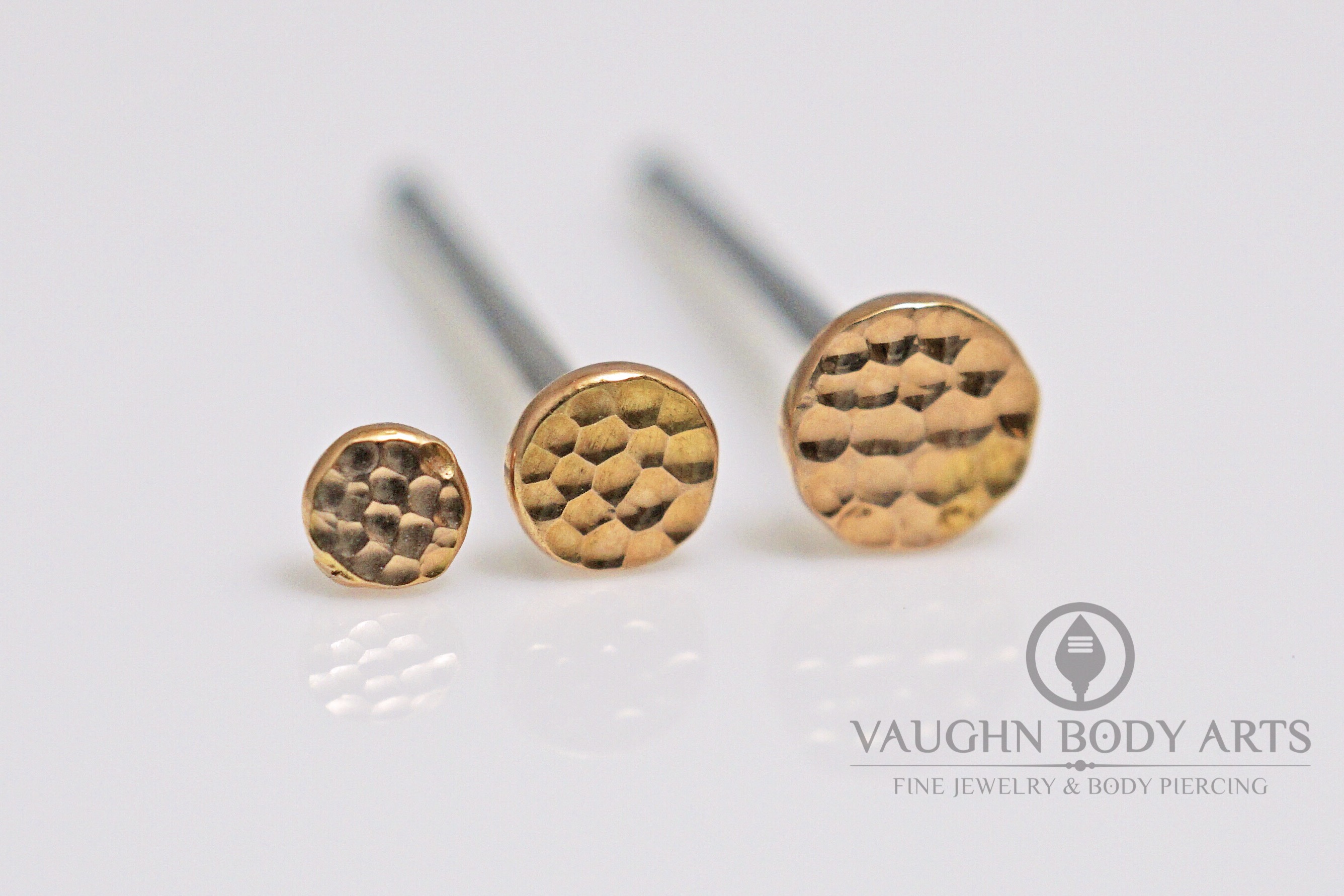 Solid 18k Rose Gold Hammered Disc from Anatometal.
