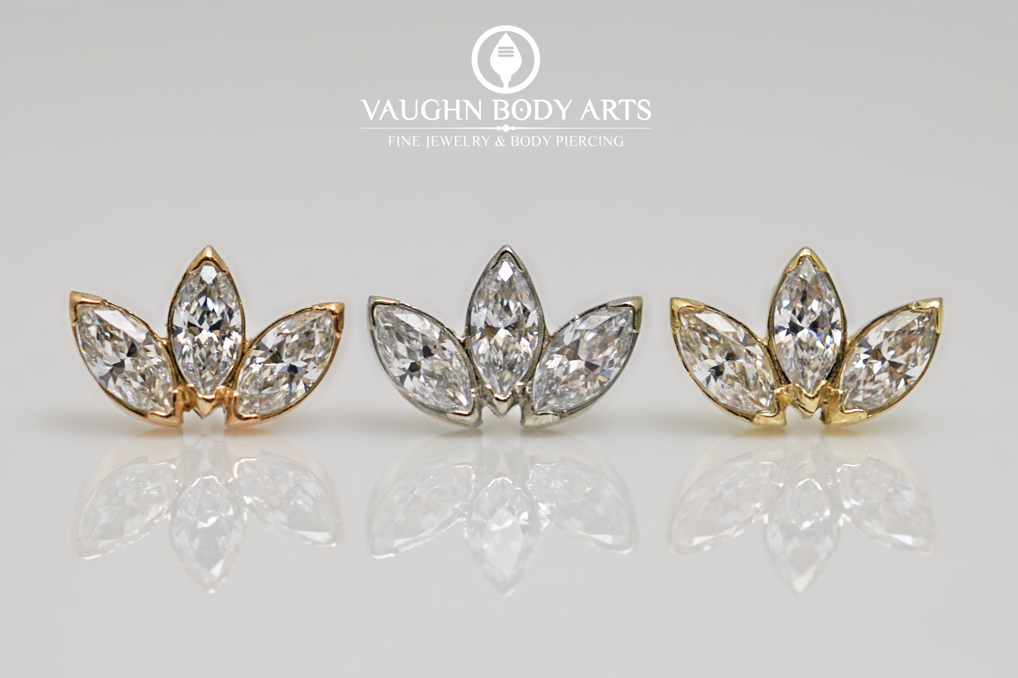 *Note: These can be custom ordered with any gemstone combination. Available in white gold, yellow gold, and rose gold. Contact Vaughn Body Arts for custom designing.